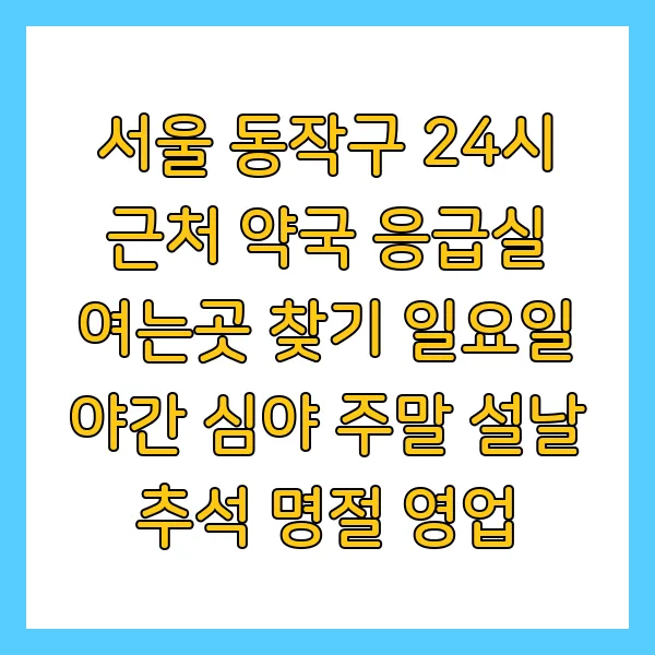 서울 동작구 24시 근처 약국 응급실 여는곳 찾기 일요일 야간 심야 주말 설날 추석 명절 영업
