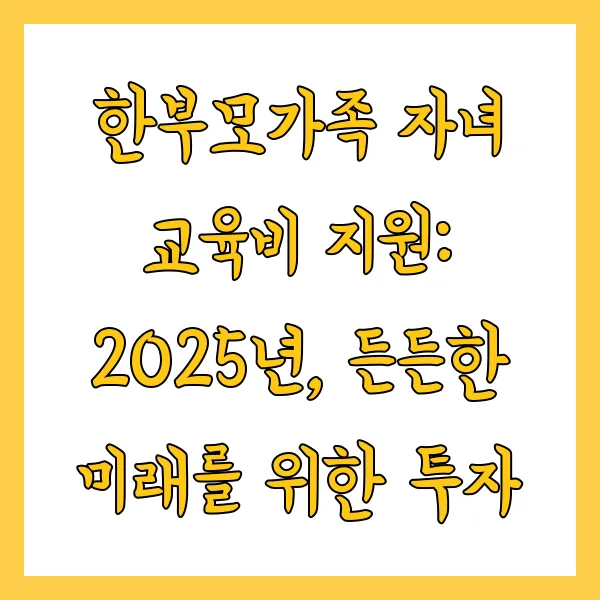 2025년, 한부모가족 여러분, 자녀들의 교육을 향한 든든한 지원을 통해 아이들의 밝은 미래를 함께 만들어 나가시길 바랍니다! 궁금한 점이 있다면 언제든지 관련 기관에 문의하여 자세한 정보를 얻으세요! 여러분의 노력과 정부의 지원이 만나, 아이들의 행복한 성장을 이루는 밑거름이 될 것입니다! 파이팅입니다!